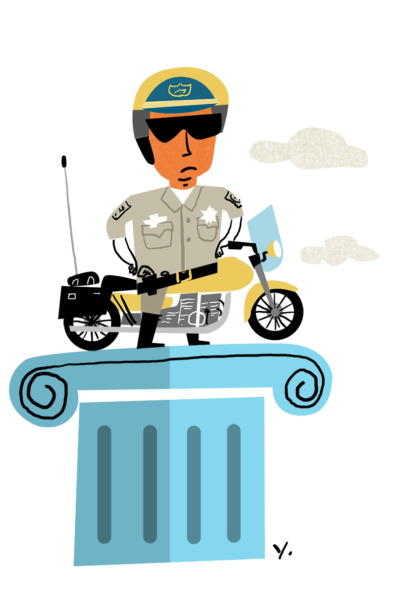 Sometimes the quick last second assignments can be the most satisfying. AD Keith Webb for the Wall St Journal asked if I could do an illustration for a humorous column about Eric Estrada upset that the movie version of CHiPs could damage the integrity of the original show. CHiPs isn’t even remotely high quality television but it’s a happy childhood memory so everyone can leave CHiPs alone.