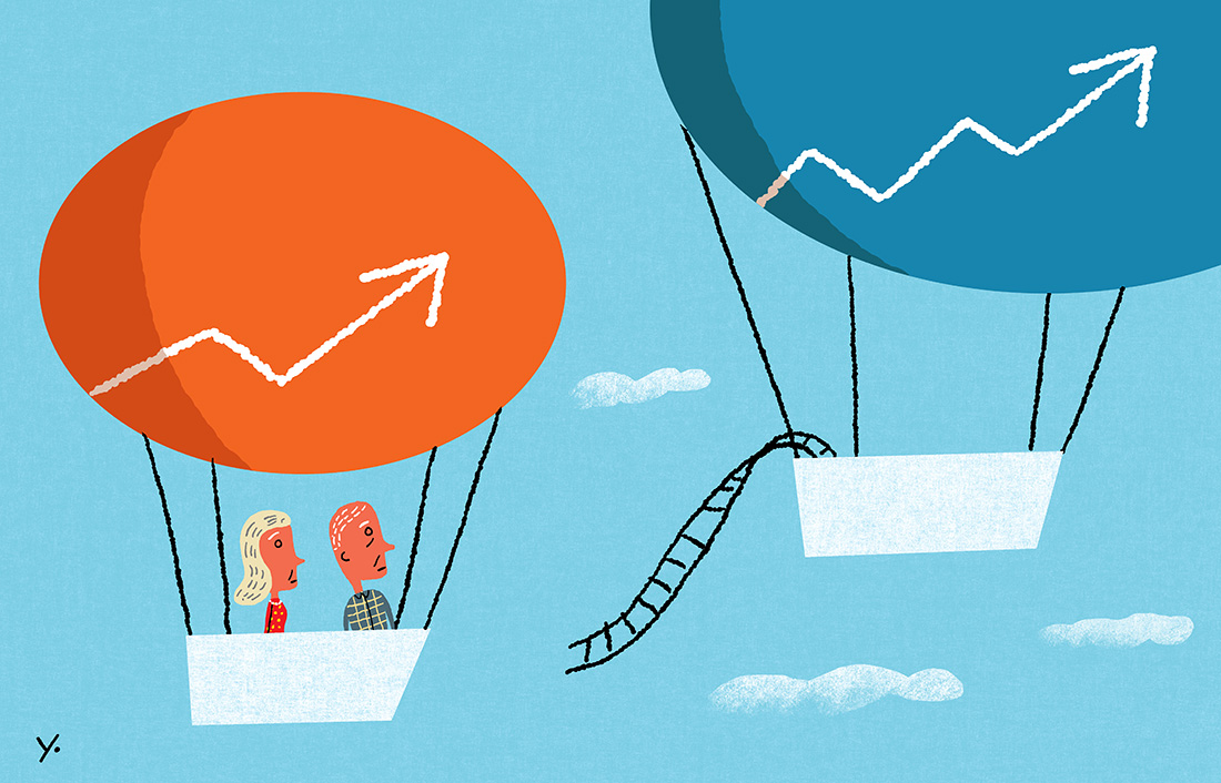 Illustration for Time Magazine about the stock market and those near retirement age. With markets at all time highs it is time to get out? Chelsea Kardokus, AD. AD Martin Gee called and is a friend of mine so it’s always a good day when a friend calls to collaborate. The main idea was deciding between the risk “jumping” for more gains when you already have significant gains in the market. Since people are living longer, a lot of assumptions about retirement planning are being rethought.