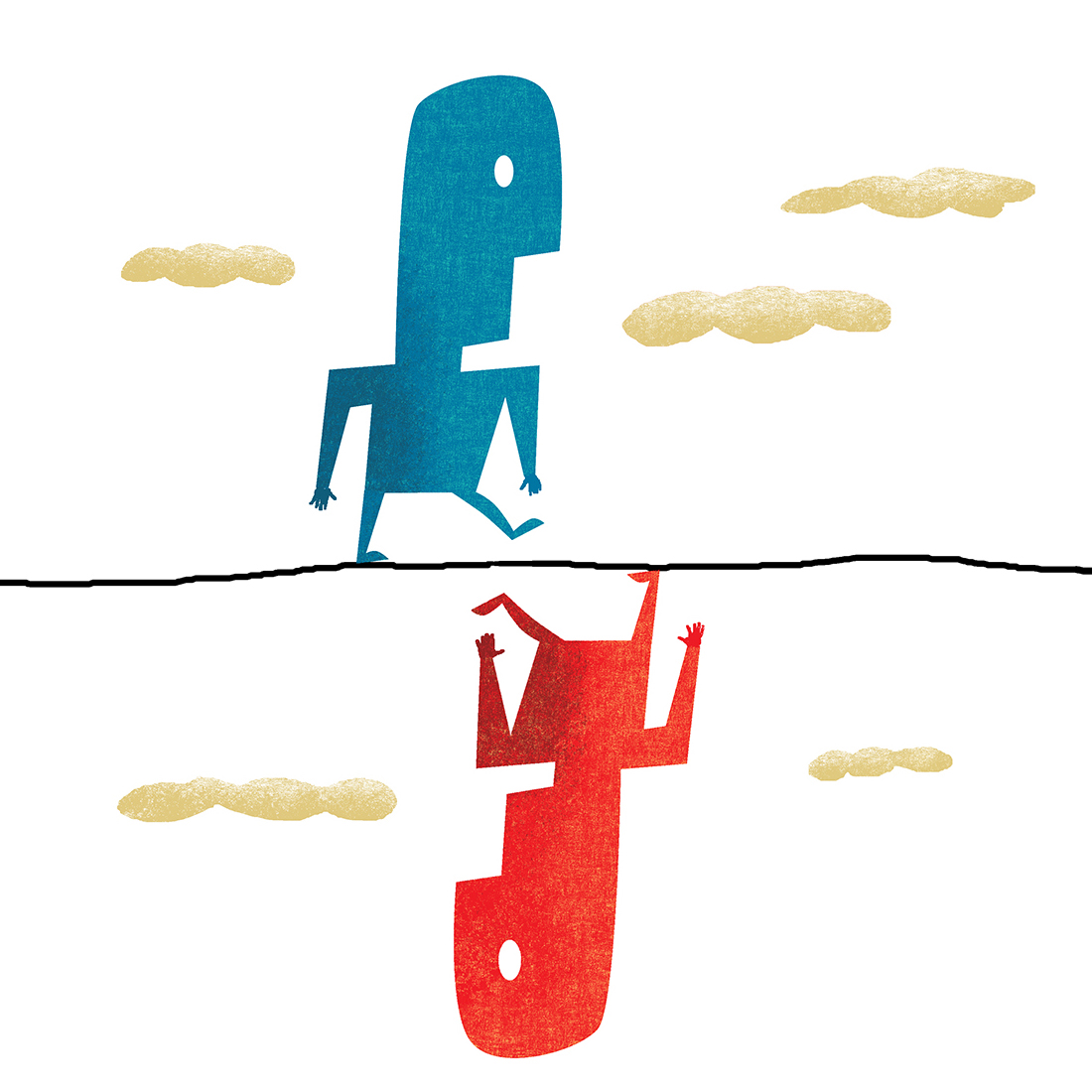 This was an image done a few years ago for Scott Seymour at the Chronicle of Higher Education which was republished for a new column about teaching humility in an era of arrogance. Ironically this image seems more relevant today with our national divide than when first commissioned.