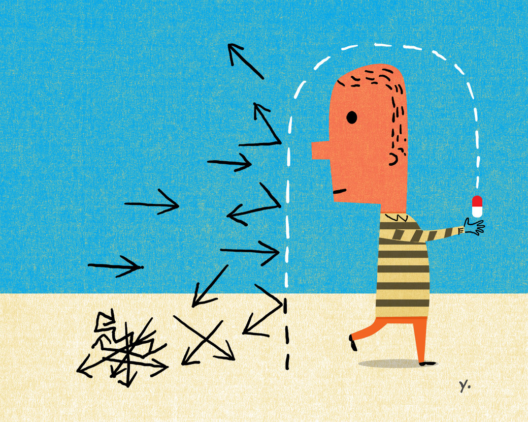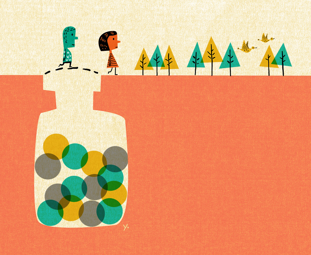 AD Jennifer Corsano called with a special edition assignment for Consumer Reports. The edition was about pain management. The editors wanted images with a lighthearted yet not frivolous feel. Sometimes the job of an illustrator can feel like a contestant on a cooking show but fortunately I love these challenges. Paul Rand was a believer a smart solution existed for every project and it’s something I always keep in mind. In the 60’s there were many cool instructional videos with cartoons and this turned out to be the perfect source of inspiration.