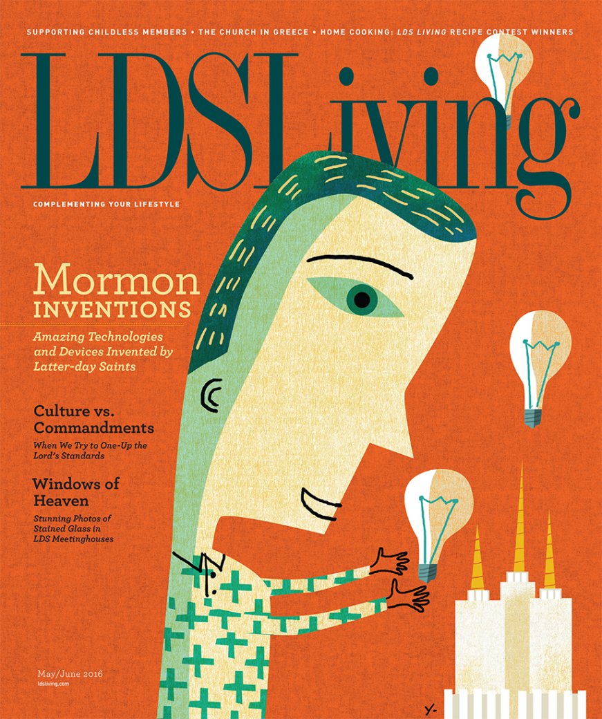 Creative Director Kelly Nield from Hales Creative called with a fun assignment. A cover an couple of illustrations were needed for a feature about Mormon inventions. The fun part was not realizing how many important inventions were created by Mormons so it was an eye opening assignment. I had known about the artificial heart but many of the breakthroughs by Mormons took me by surprise. I tried catching the sense of wonder and it’s always nice to work on a project which opens your eyes.