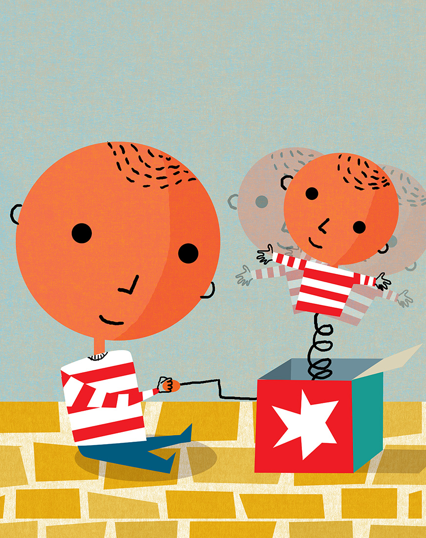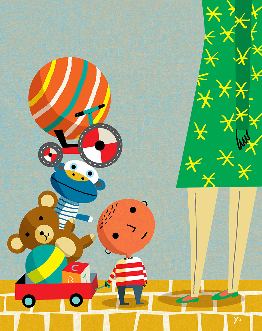 Parents Magazine is one of my favorite clients, they are fans of illustration and I love a lot of the illustrators who work for Parents so it’s always a good day when AD Emily Furlani calls. She had a great series to illustrate about why toddlers suddenly become very possessive. Their sense of self is developing and possessions imprint themselves into their sense of identity. I am sure my mom was driving nuts when I went through this period so it was easy to come up with ideas about a toddler’s sense of “me”. Much thanks to Parents and Emily for a fun project