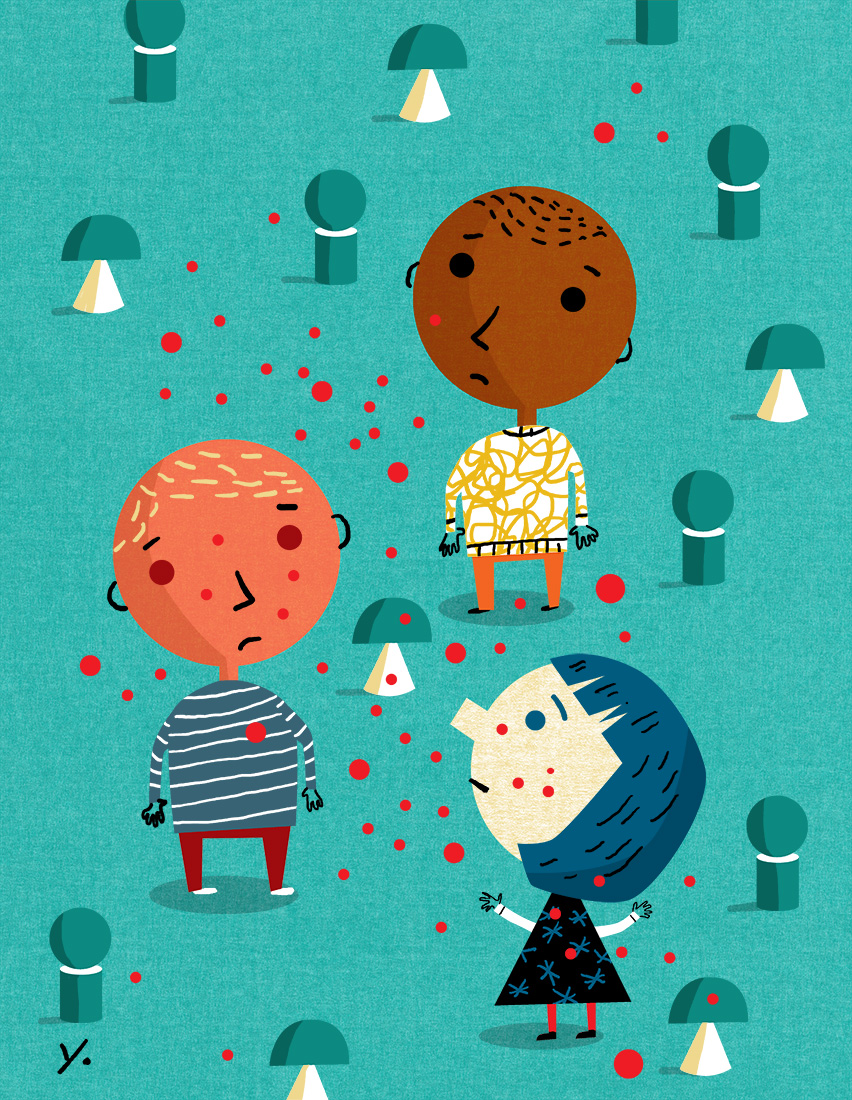 Parent’s Magazine is one of my favorite clients. Designer Jamie Lee called with a feature about the risks when some parents do not vaccinate their children. The timing for the project was perfect as I had come back from Naoshima Japan, which is home to the work of Yayoi Kusama who clearly was an influence. Speaking of Kusama, please check out my friend, Ellen Weinstein’s wonderful book about Kusama for MoMA.The main idea for both images was the fear of infections even when you think you are protected.