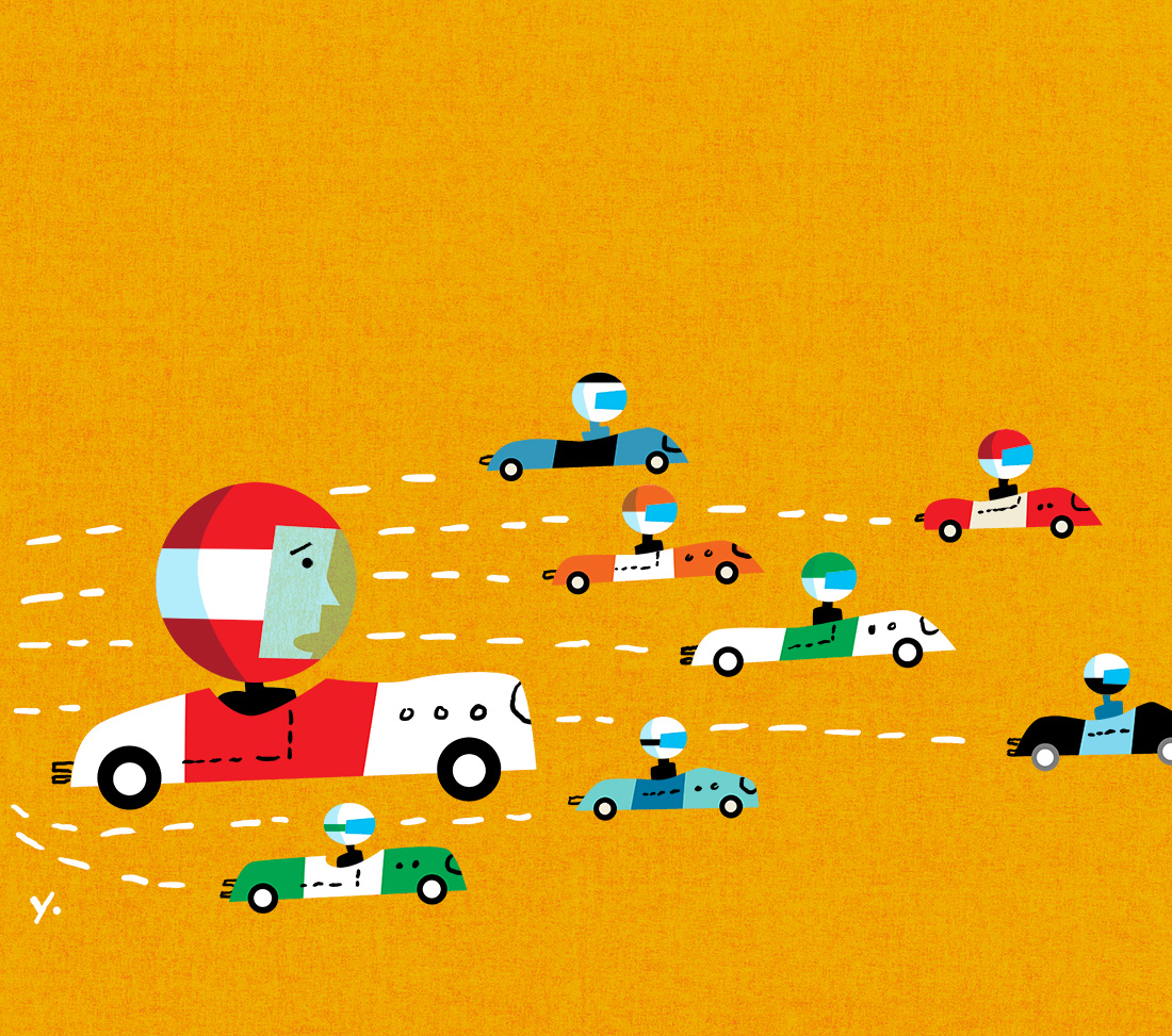 Orlie Kraus from the Wall St Journal and I are long time collaborators and it was nice to start the year with an assignment for her about small cap stocks finally outperforming large cap stocks for a first time in many years. The image was for print and also had to be designed to work in vertical and horizontal formats for mobile devices. The idea of small race cars outracing a larger car was the perfect opportunity to play with different colors and create an optimistic start for the new year.
